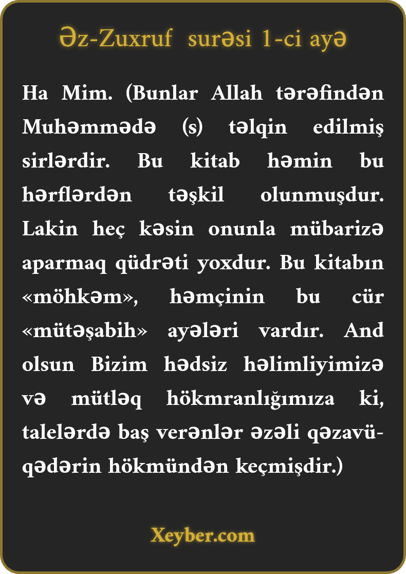 Əz-Zuxruf surəsi 1-ci Ayəsinin Təfsirləri