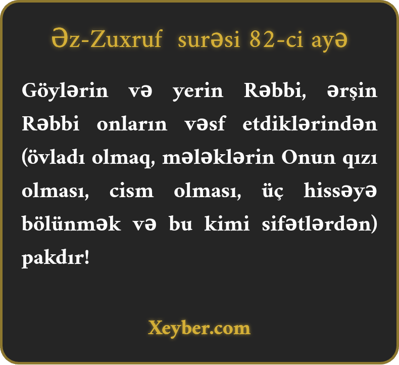 Göylərin və yerin Rəbbi, ərşin Rəbbi onların vəsf etdiklərindən (övladı olmaq, mələklərin Onun qızı olması, cism olması, üç hissəyə bölünmək və bu kimi sifətlərdən) pakdır!