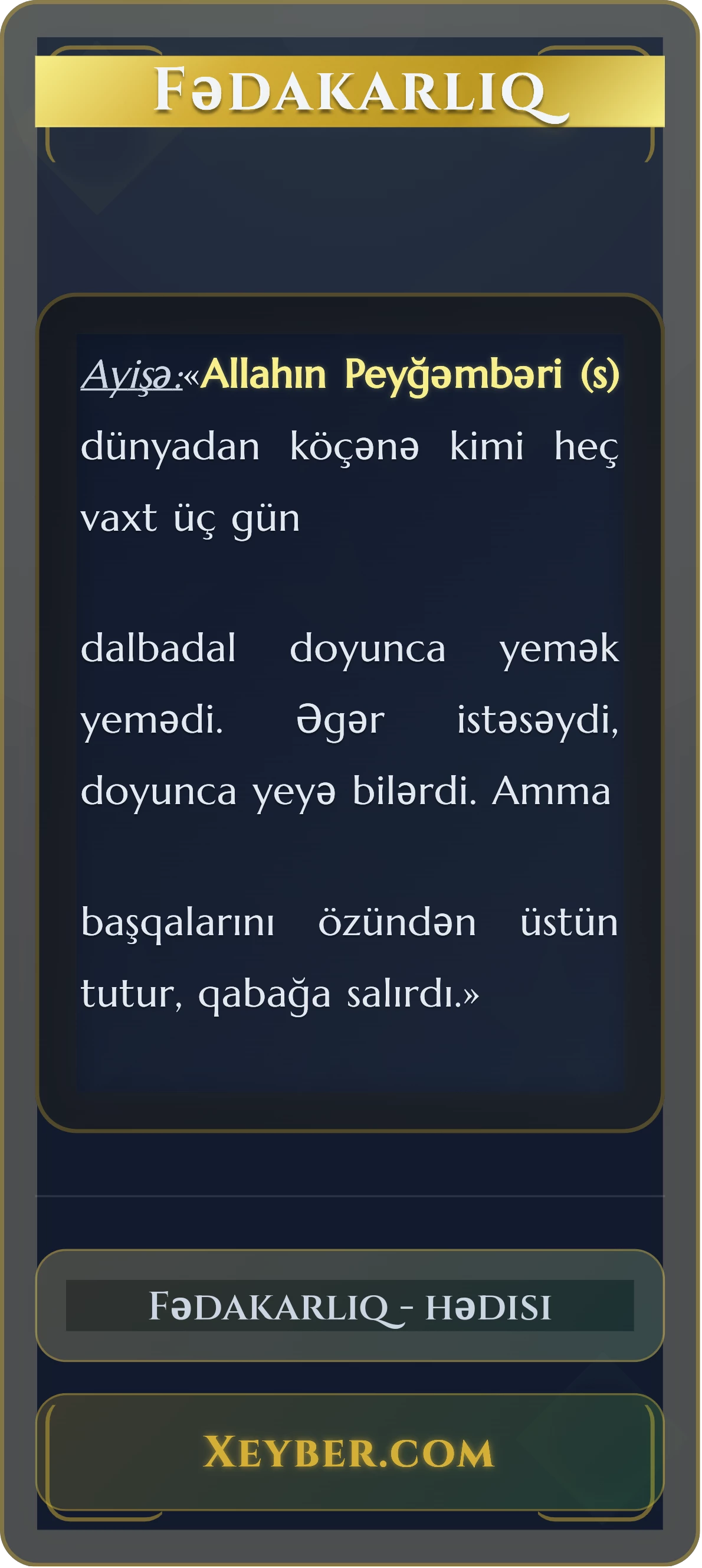 başqalarını özündən üstün tutur, qabağa salırdı.»